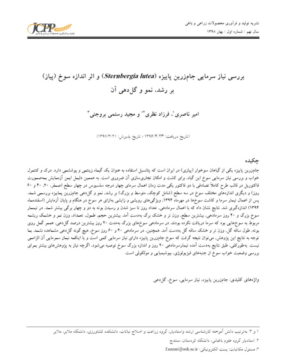 Pejman Azadi, Hedayat zakizadeh, Ayoub Molaahmad Nalousi, Farzad Nazari, Stephen F. Chandler