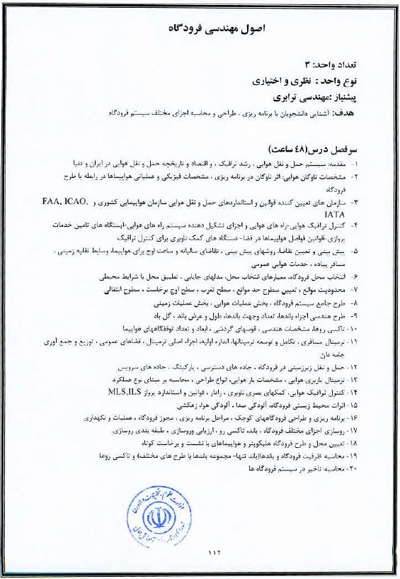 آشنایی با فرودگاه ها، اقتصاد فرودگاه، بخش های زمینی و هوایی به همراه طرح هندسی باند پرواز و خزش.